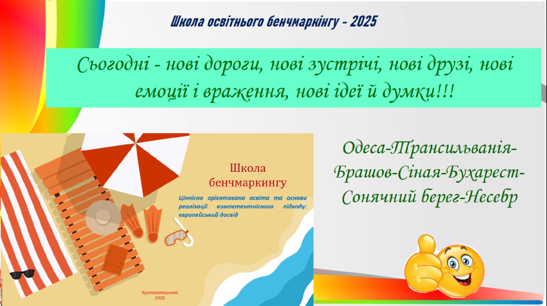23-28 червня 2025 року проведено практикум, а саме 10-ту ювілейну  Школу освітнього бенчмаркінгу «Ціннісно орієнтована освіта та основи реалізації компетентнісного підходу: європейський досвід».  Цього року учасники вивчали досвід колег у Одеському ліцеї “Лідер”.